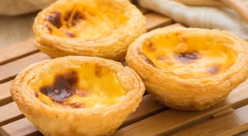 Though many Portuguese have a simple piece of toast or bread alongside their drink, the perfect pairing for these milky coffees are pasteis de nata, or egg custard tarts. With a flaky puff pastry shell and a creamy custard filling, they're equally popular as a snack for the 11 a.m. cafe break, another Portuguese morning ritual.