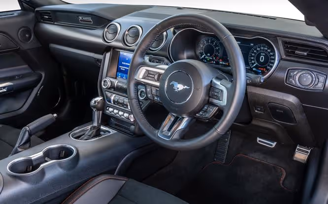Cabin decor comes in the form of GT/CS logos on the seats and floor mats, as well as a unique Mustang California Special badge on the Carbon Hex aluminium instrument panel. You’ll also find partial suede trim in Miko suede on the seats and door inserts of this edition.