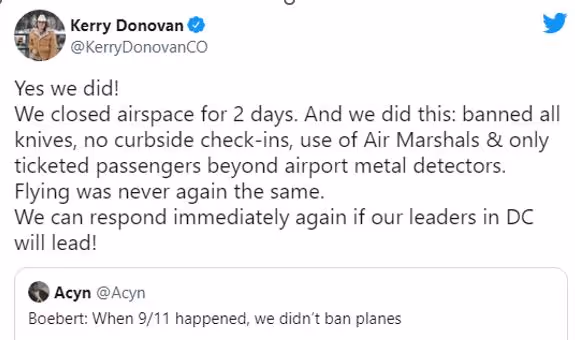 Boebert’s reasoning didn’t hold up with critics. Many noted that the Sept. 11, 2001, terrorist attacks forever changed the landscape of air travel in order to prevent future attacks.
