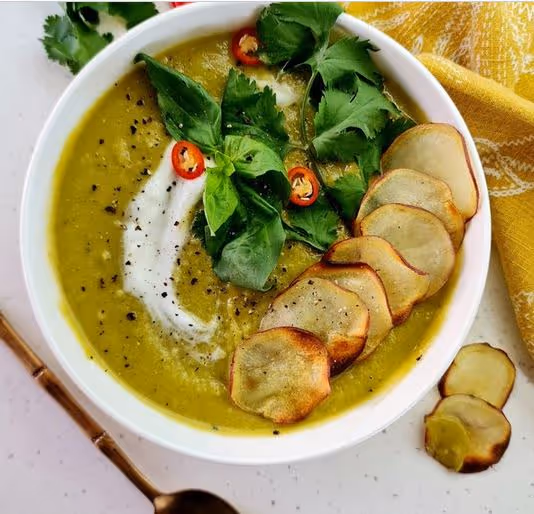 Roasted Thai green sweet potato soup